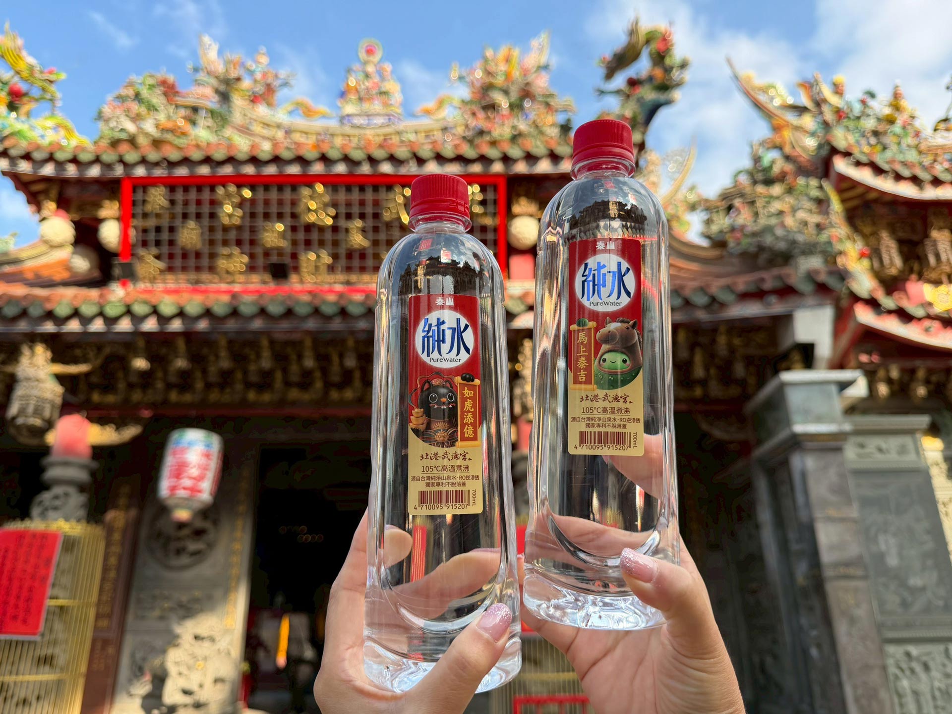 4.泰山純水再度攜手台灣首座財神廟「北港武德宮」,推出【如虎添億,馬上泰吉】新春開運限定版。